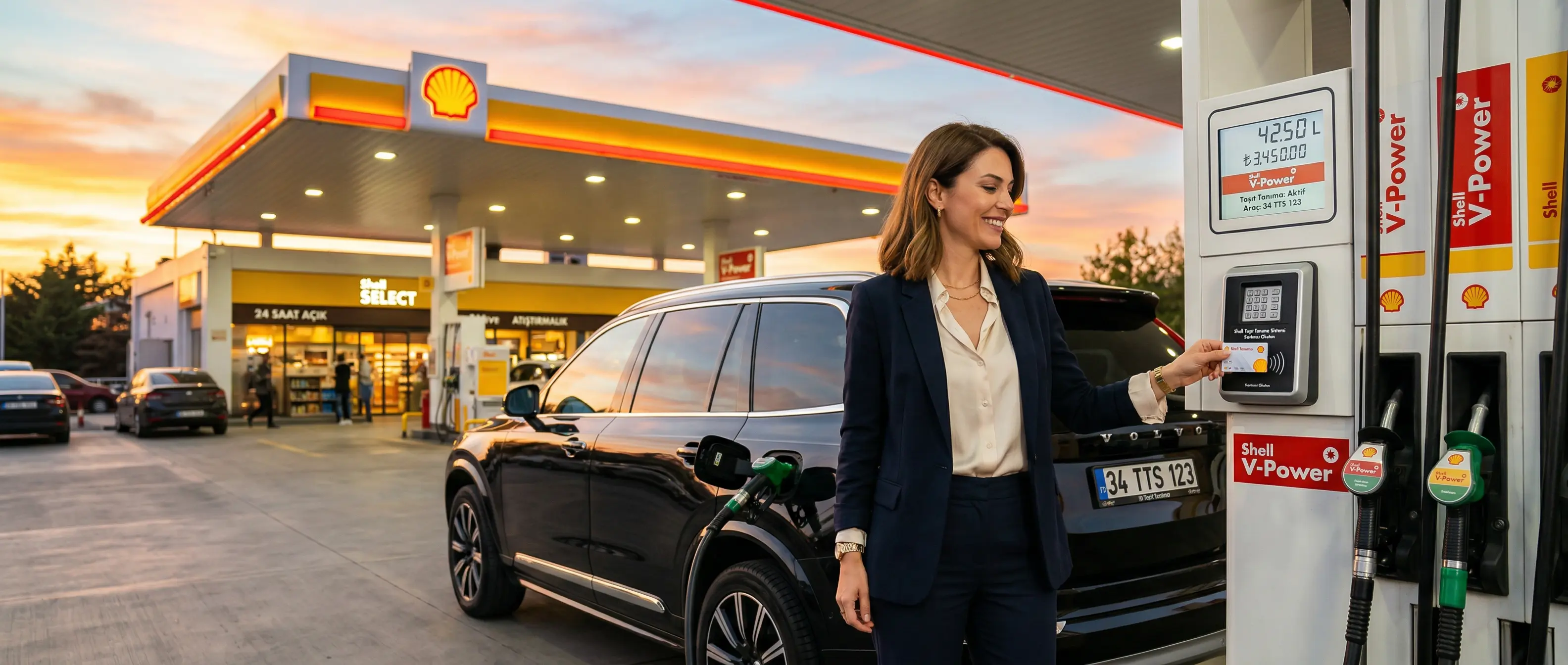 Shell Taşıt Tanıma Sistemi (TTS), araç plakasını veya anahtarlığı okuyarak sürücünün istasyonda hızla yakıt almasını sağlar. Şirket araçları için harcama limiti, yakıt takibi ve raporlama özellikleri sunar.
